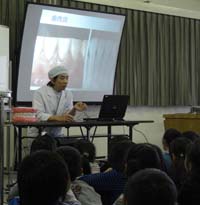 『歯の授業』小学生編(@・`ω・)v☆ 2010年11月30日(火)   | 今日で、霜月も終わり、明日からはカレンダー最後の一枚、師走に入ります。いよいよ、せわしくなってきますね∩(+`ω´+)∩!そんなせわしい中、今日は、東小学校での『歯の授業』に行ってきました。去年は、親さん共々の授業という形で行わせていただきましたが、今回は、3年生の生徒さんのみでした。生徒さん対象ということで、子供たちの熱気にあおられてか、先生もテンションを上げて話されていました。Σ(σ`・ω・´)σ。若さのエキスをもらったかな・・・(〃^∇^)o彡☆ |